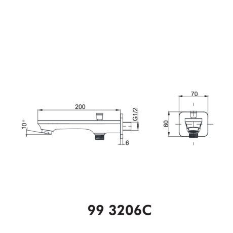 Gio 200x35mm square bath diverter spout (15mm inlet)