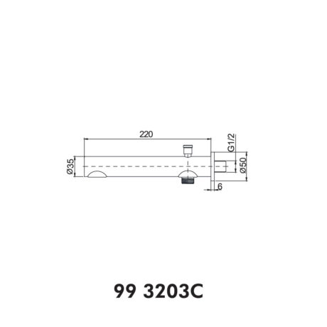 Gio 200x30mm round bath diverter spout (15mm inlet)