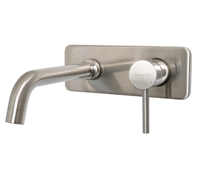 The Moon Brushed Stainless Steel wall mounted concealed basin mixer has 1/2″ female connections. The centres are 115mm and the length of the spout is 193mm. The overall size of the coverplate is 220mm.