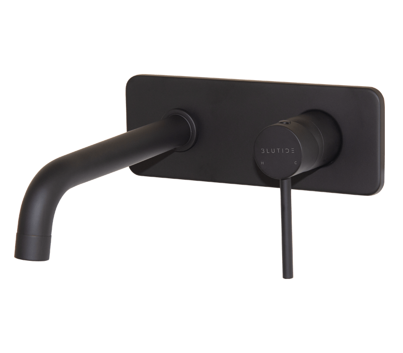 This wall mounted concealed basin mixer has 1/2″ female connections. The centres are 115mm and the length of the spout is 205mm. The overall size of the cover plate is 220mm.