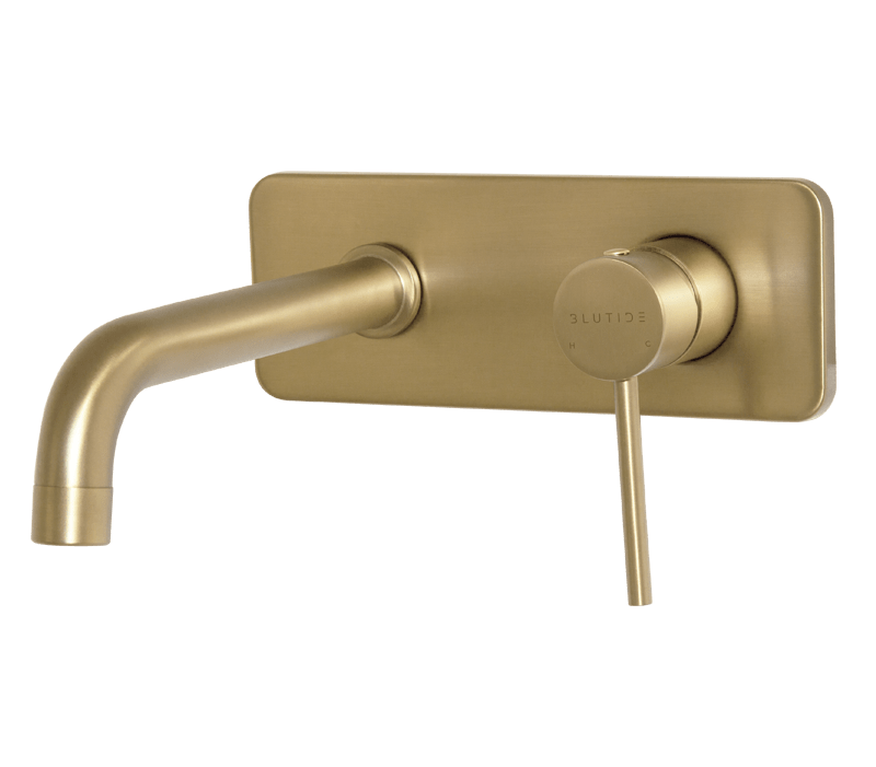 This wall mounted concealed basin mixer has 1/2″ female connections. The centres are 115mm and the length of the spout is 205mm. The overall size of the cover plate is 220mm.