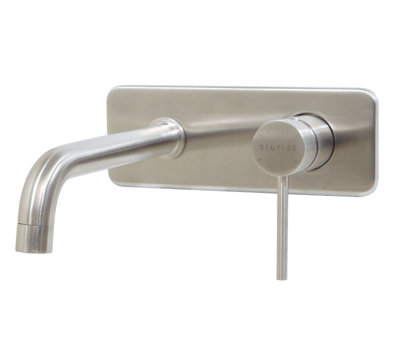 This wall mounted concealed basin mixer has 1/2″ female connections. The centres are 115mm and the length of the spout is 205mm. The overall size of the cover plate is 220mm.