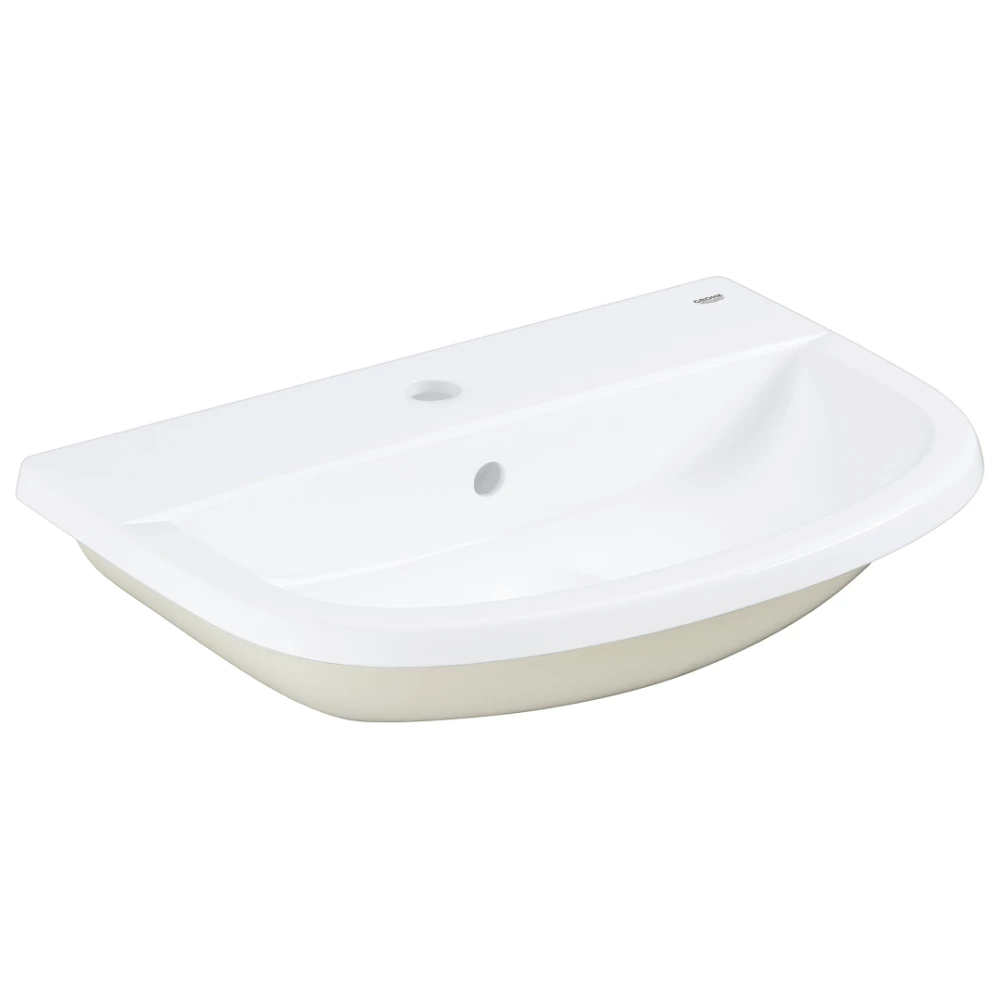 Get sleek, fuss-free styling in your bathroom with the GROHE Bau Ceramic counter basin 55 – built-in, 1 hole punched, with overflow, 560 x 400 mm, fixings included, sanitary ware