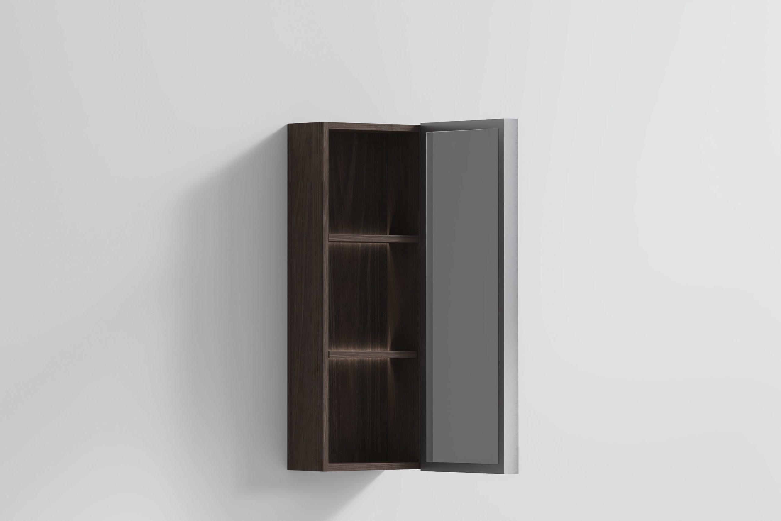 Black Tie Cabinet is a sleek wall-mounted bathroom storage cabinet designed for contemporary interiors. Featuring a refined dark wood finish with a modern framed door design, this cabinet brings a sophisticated and minimalist look to any bathroom space. The Black Tie Cabinet offers practical vertical storage while maintaining a slim profile that is ideal for both compact and spacious bathrooms.