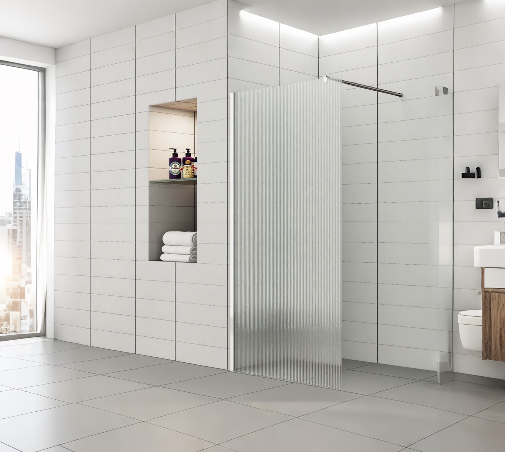 Chrome aluminum, 8mm reeded glass, with pull bar