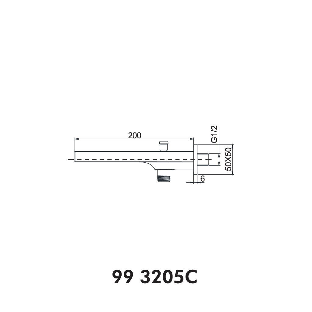 Gio 200x35mm square bath diverter spout (15mm inlet)