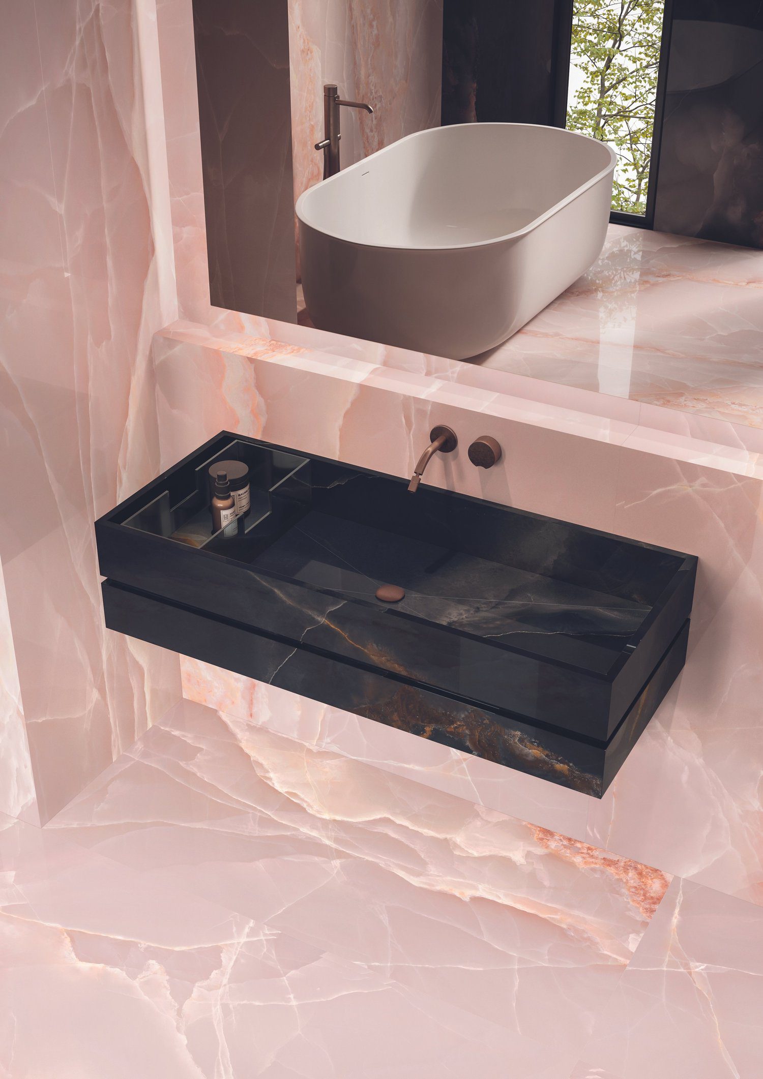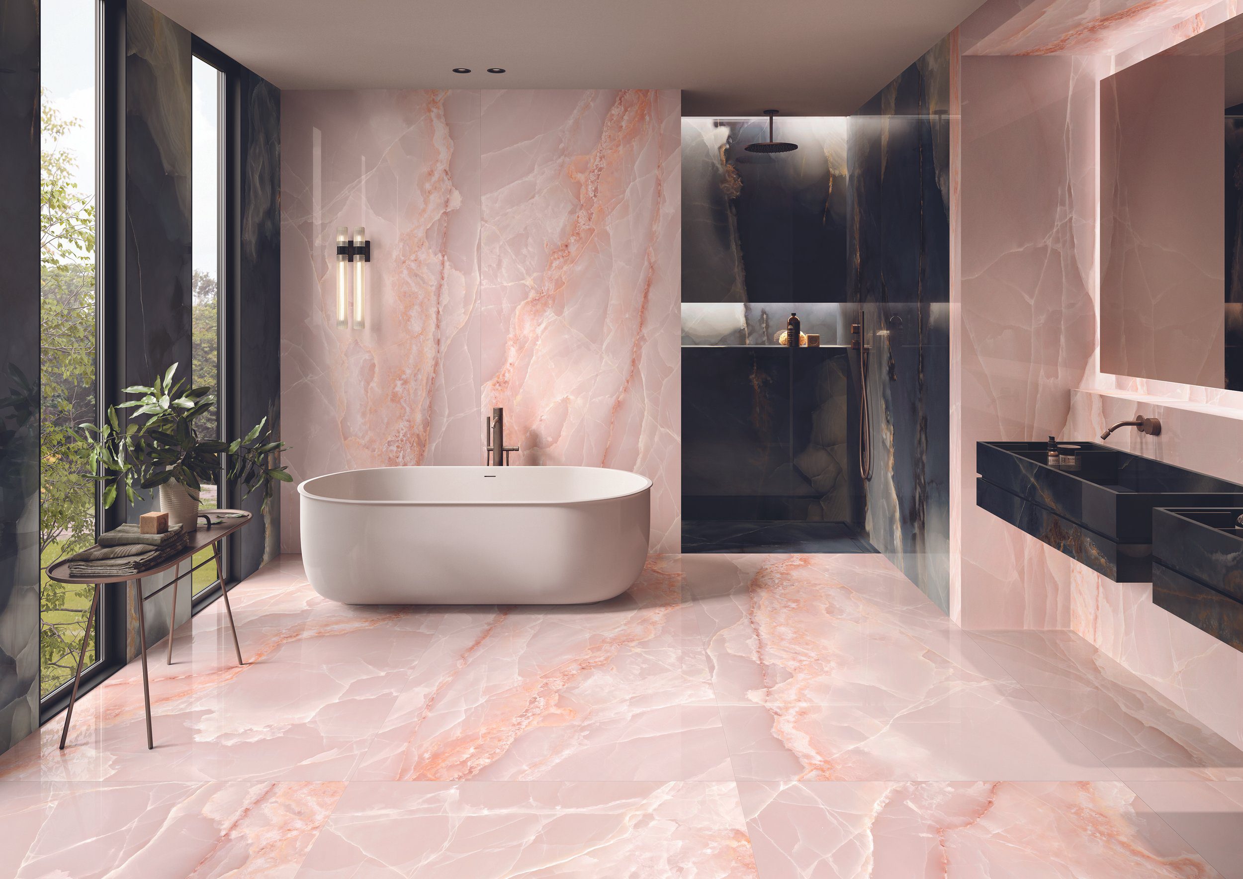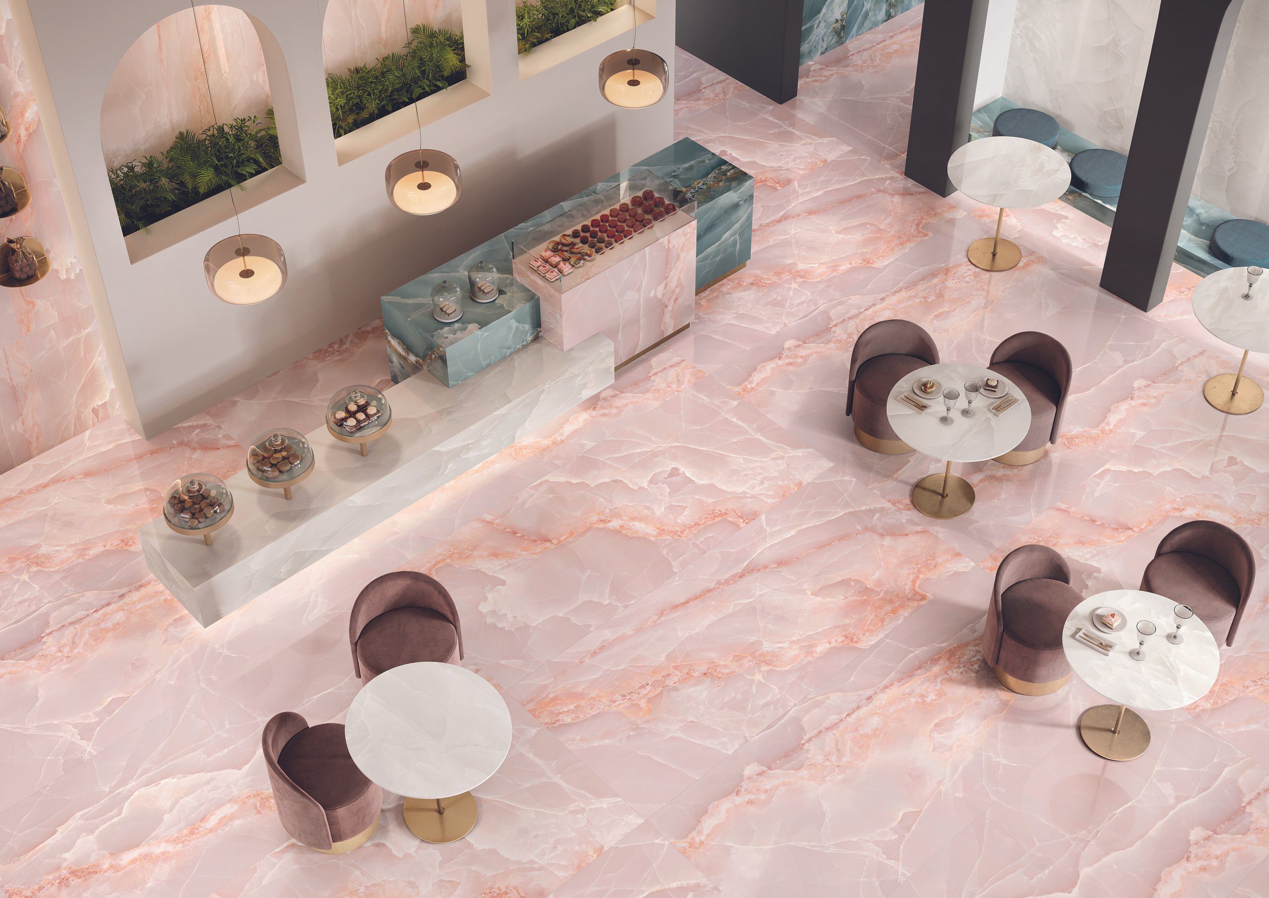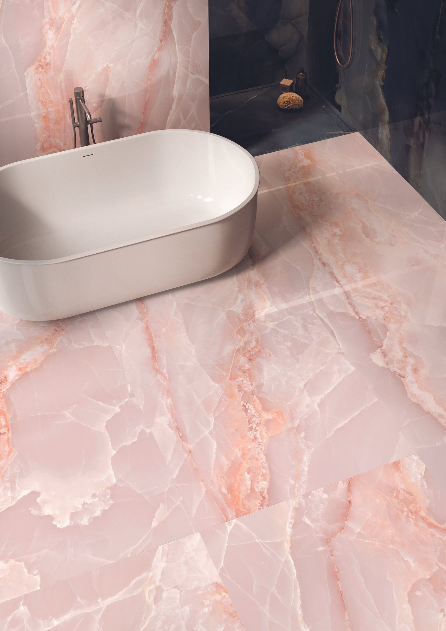 Onyx Pink is a striking porcelain surface material that captures the essence of natural stone while offering unparalleled durability and versatility. Its soft, muted pink tones are beautifully interspersed with intricate veining, mimicking the appearance of genuine onyx. This unique color palette adds warmth and elegance to any space, making it suitable for a variety of applications, from flooring to wall cladding. With its combination of aesthetic appeal and resistance to staining and scratching, Onyx Pink is an excellent choice for both residential and commercial design projects, allowing for a harmonious blend of style and functionality.