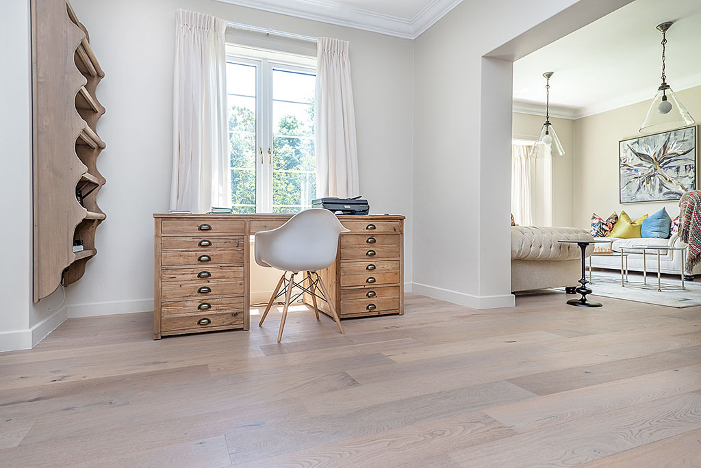 FINISH: Light brushed, White stained, invisible UV lacquered (KLUMP) GRADE: Rustic