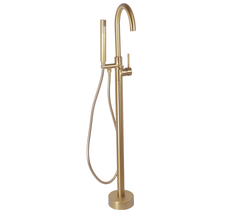 Round Free Standing Bath Mixer Tap with H/S | Neo Brushed Brass