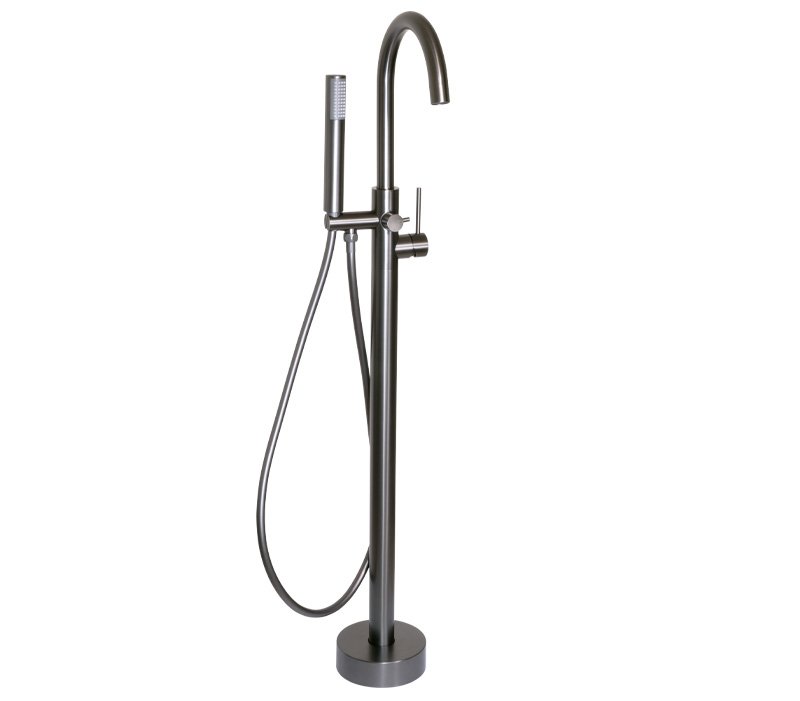 This free standing bath mixer measures 1008mm from the floor to the outlet and the spout has a reach of 200mm. The inlets are 1/2” female connections.