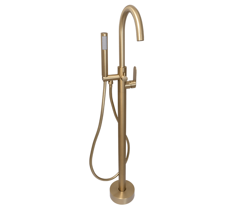 Round Free Standing Bath Mixer Tap with H/S | Satin Brass