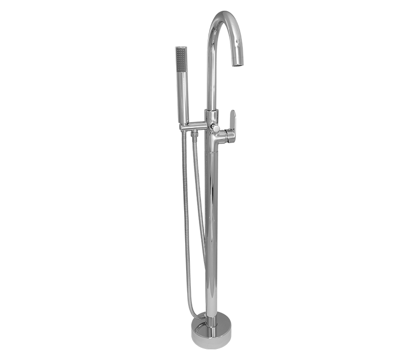 This free standing bath mixer measures 1008mm from the floor to the outlet and the spout has a reach of 200mm. The inlets are 1/2” female connections.