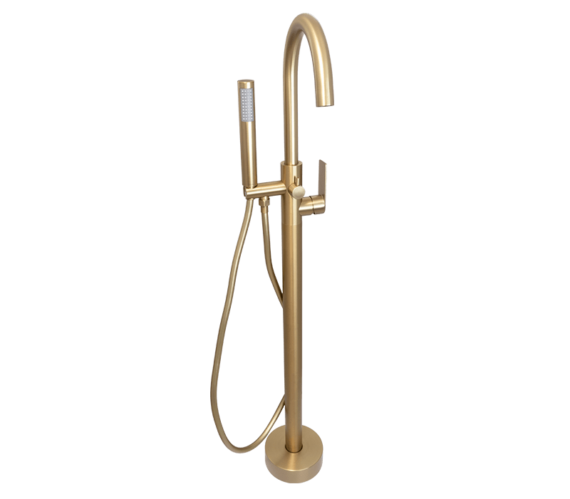 This free standing bath mixer measures 1008mm from the floor to the outlet and the spout has a reach of 200mm. The inlets are 1/2” female connections.