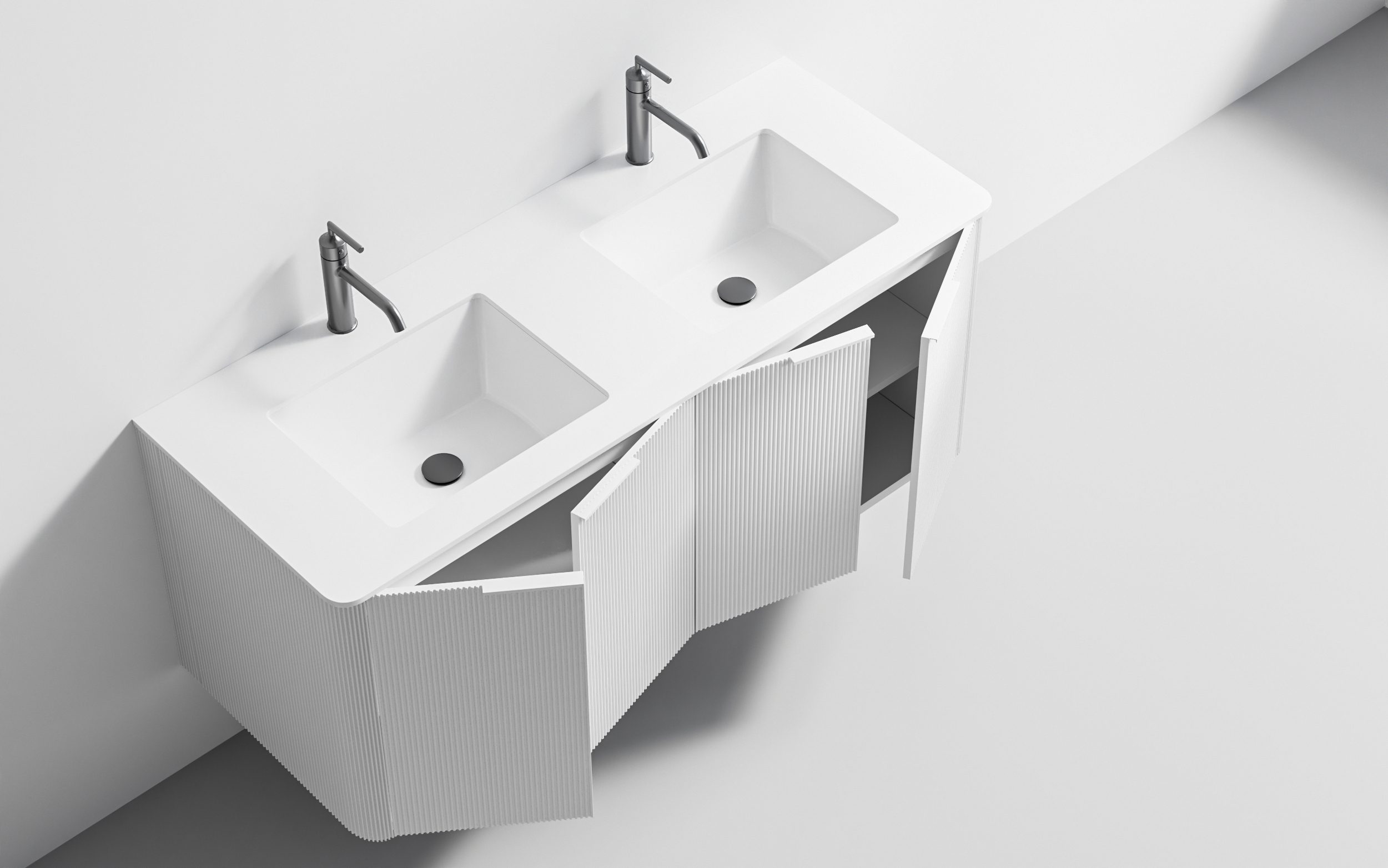 The Stripe Double – Basin is a vanity offering a distinctive design that balances visual interest with practical functionality. Its defining stripe detailing gives it a structured, contemporary look that sets it apart from standard flat-front vanities — making it a statement piece in its own right. At approximately 800x510x620mm, the Stripe Double is well-proportioned for a single-basin bathroom, providing a comfortable depth and a clean profile.